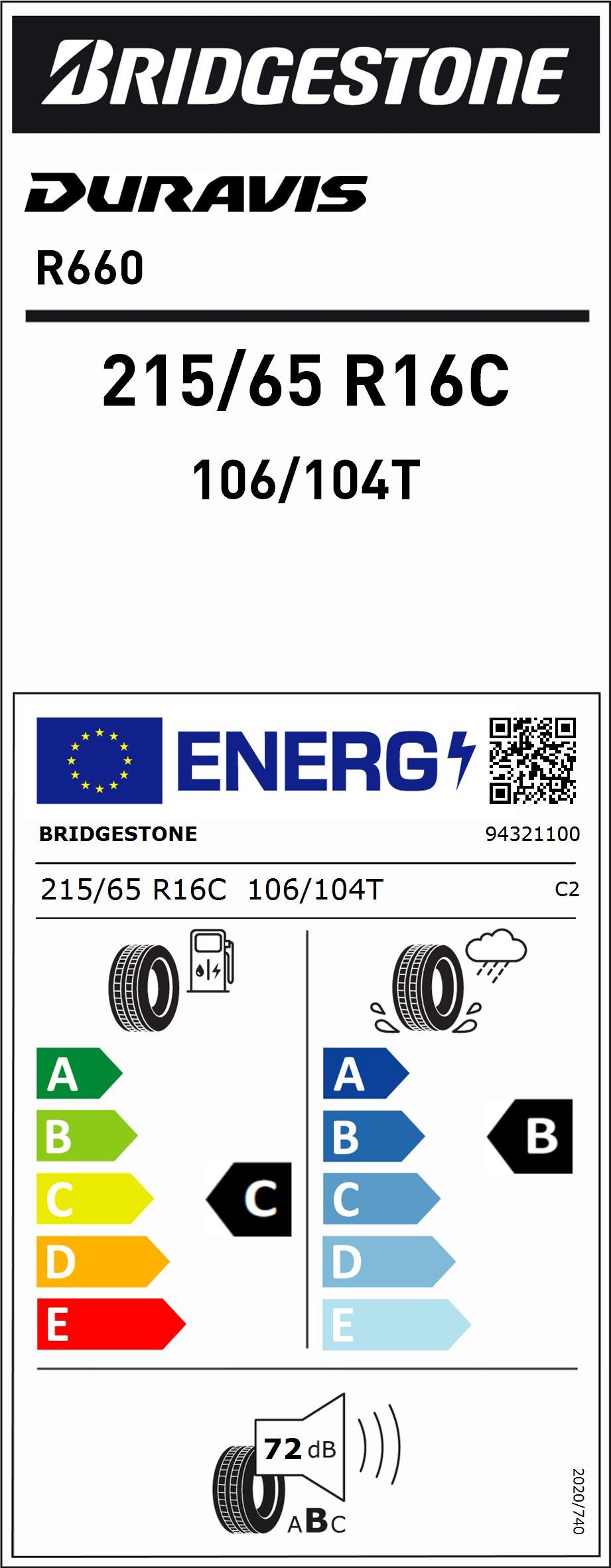 215/65R16C 106/104T Bridgestone R660
